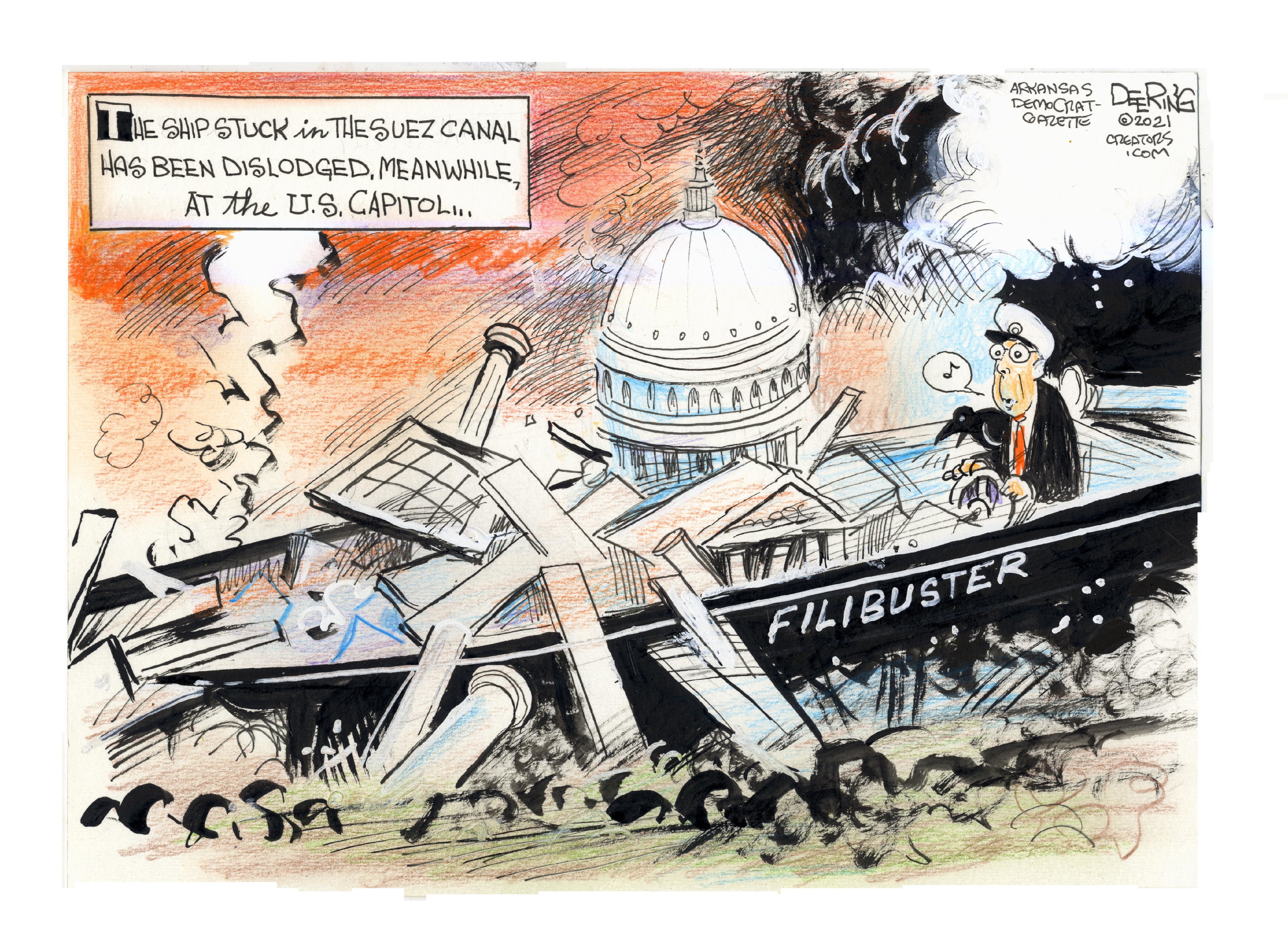 Political Cartoon U.S. mitch mcconnell filibuster suez canal ship